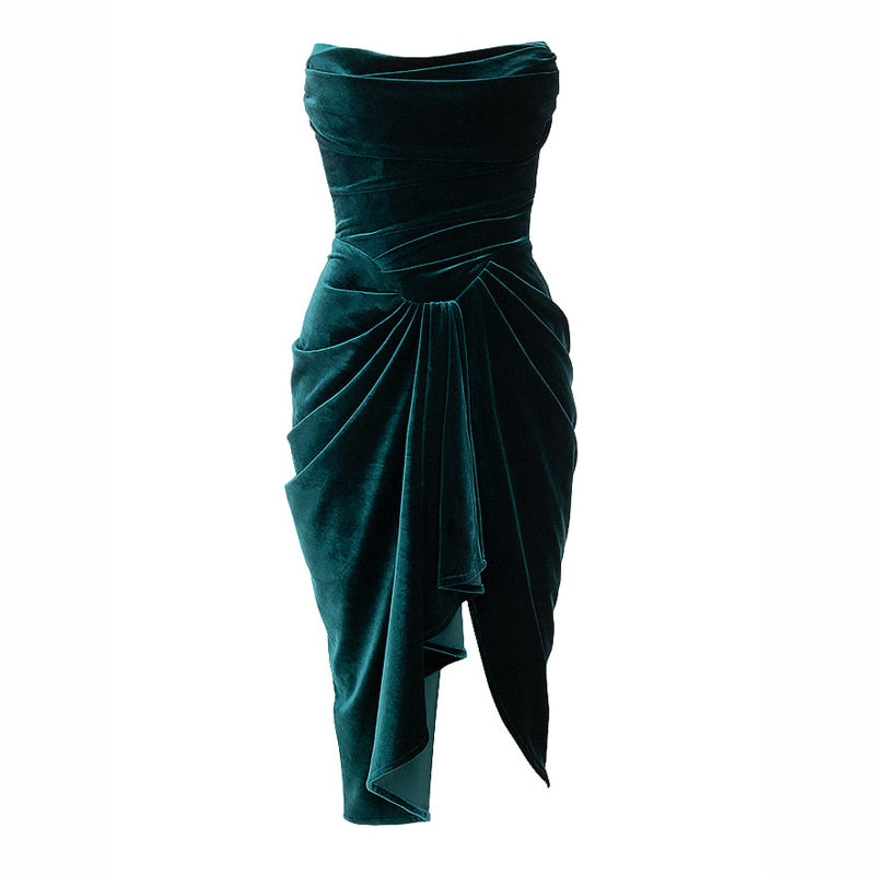 Emerald green velvet bodycon dress