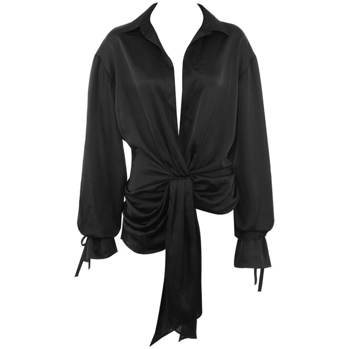 Black Satin Drape Dress